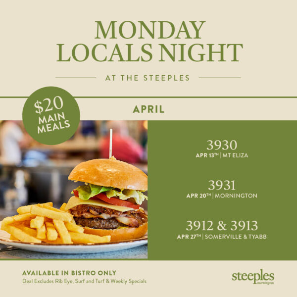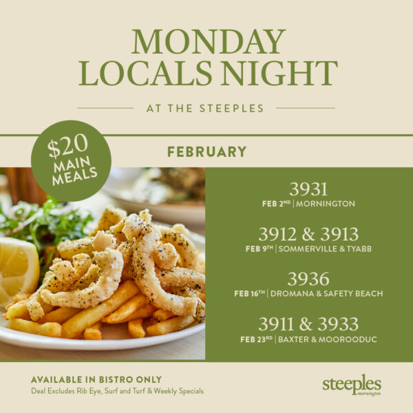 Experience the best of the Mornington Peninsula at Steeples, where good times, great food, and unforgettable moments await. Book a table, plan your next event, or just drop in and soak up the atmosphere